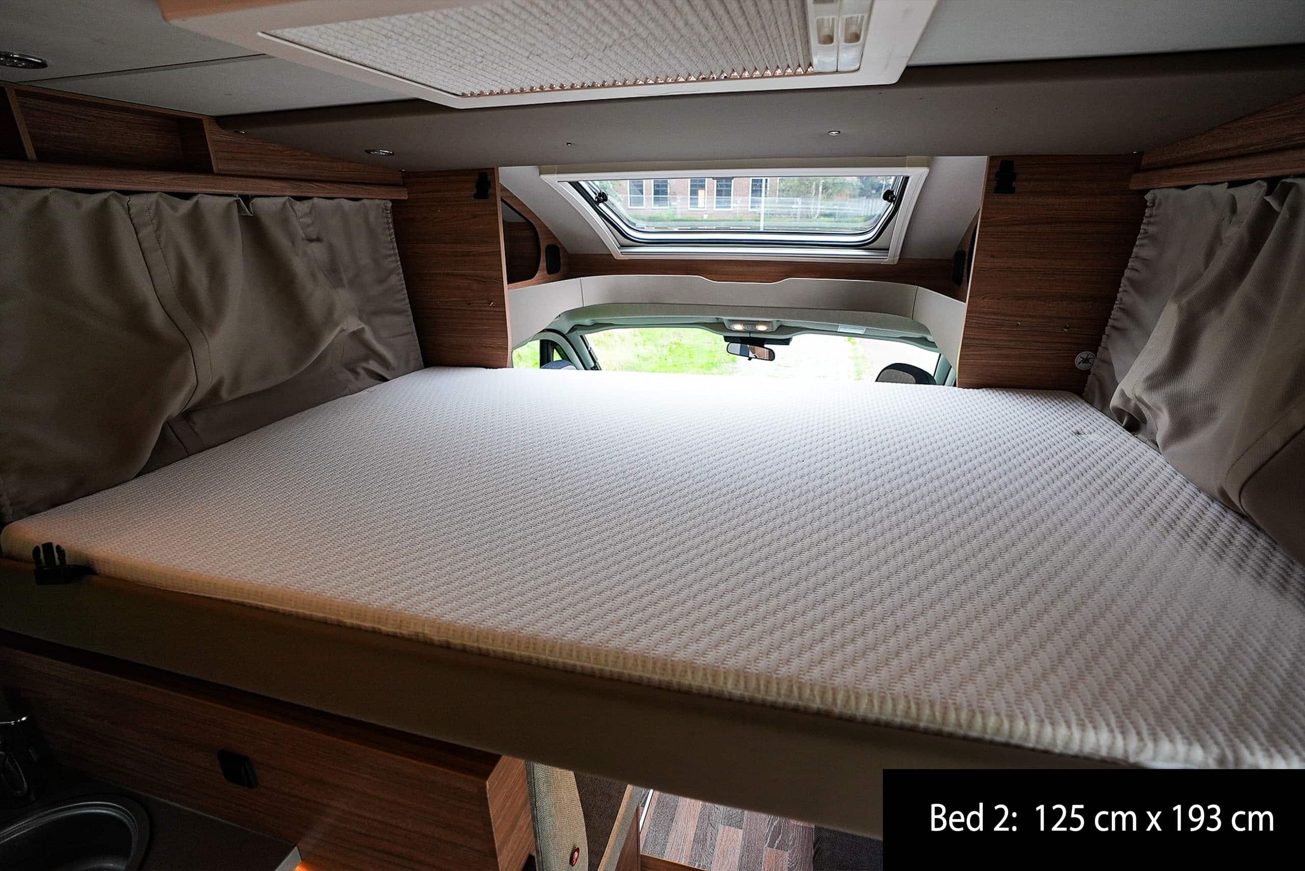 The Wanderer heeft meer ruimte door de ideale stahoogte van 215 cm. Het hefbed kan je overdag onopvallend opbergen en in de avond ligt het bed heerlijk comfortabel. Door de royale plafondkasten is er extra opbergruimte gecreëerd. De keuken in The Wanderer is groot genoeg om met z’n tweeën te gebruiken. Ook de badkamer is groot genoeg om door meerdere personen te worden gebruikt en heeft extra opbergmogelijkheden.